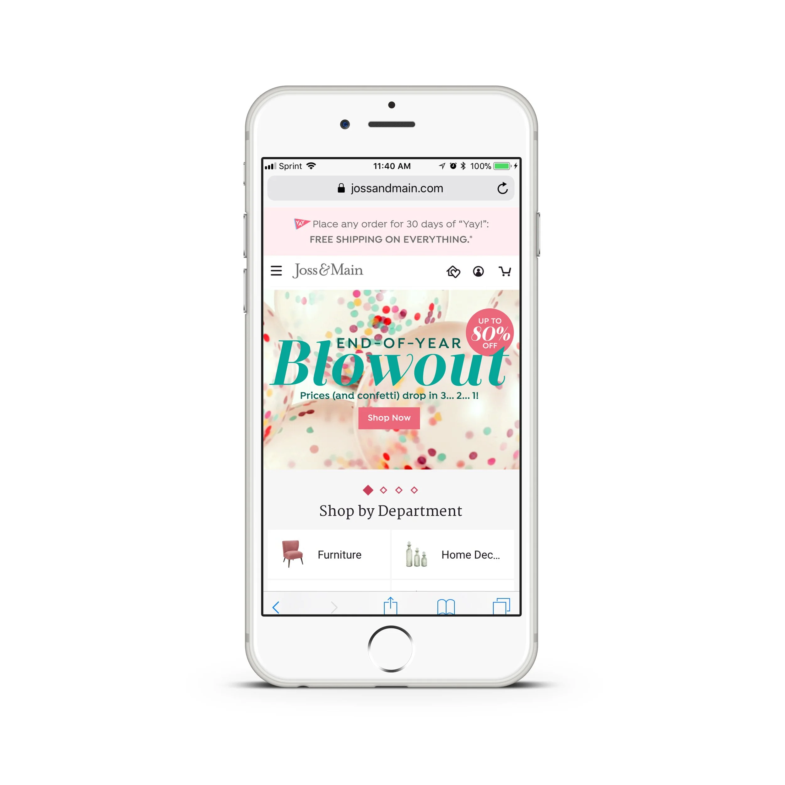 For Joss & Main’s New Year promotion, I concepted and art directed a balloon popping video. This concept was the brand’s first in-house filmed video for a promotional campaign. All visuals were filmed, edited, and brought into assets across site, email, and social.